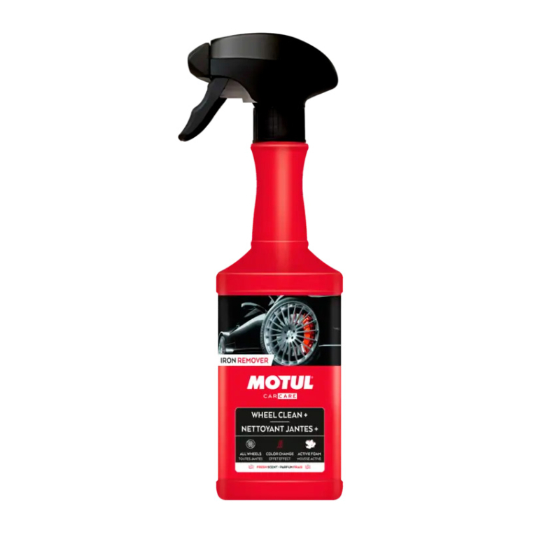 MOTUL WHEEL CLEAN + - очиститель для дисков и колесных колпаков. Средство предназначено для удаления загрязнений с разных типов колесных дисков, а также с пластиковых колпаков и декоративных накладок. Формула с активной пеной упрощает нанесение, а при контакте с продуктами износа тормозной системы состав меняет цвет на красный.