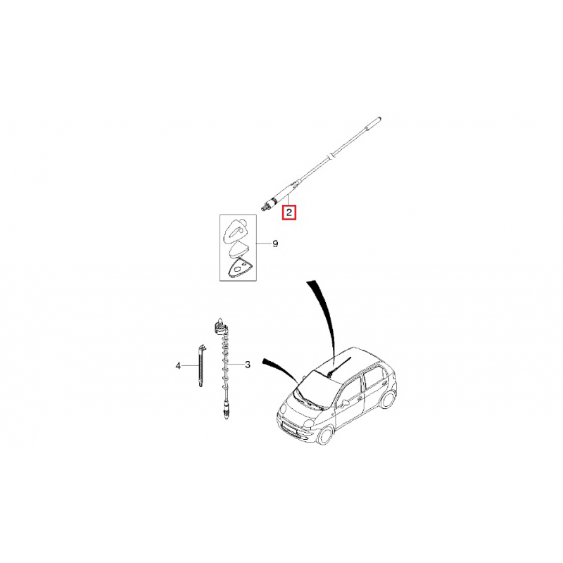 Антенна с механической регулировкой. Для Матиз в кузове M100 M150. Устанавливается на крышу. На схеме номер 2. Цена за 1 штуку.