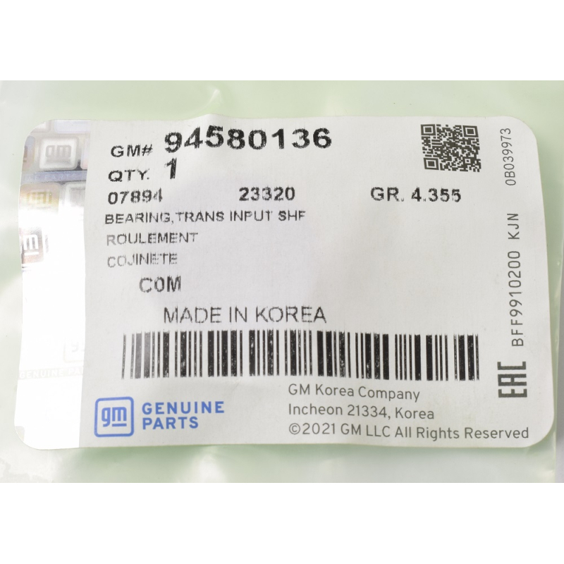 Оригинальный код 94580136 полностью совпадает с каталожным номером производителя GM.
