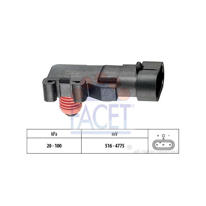 Датчик абсолютного давления MAP (Manifold Absolute Pressure) подходит для автомобилей Нубира 2.0, Такума 2.0, Леганза 2.0. Номера по каталогу GM: 12614970, 16212460. Производитель FACET.