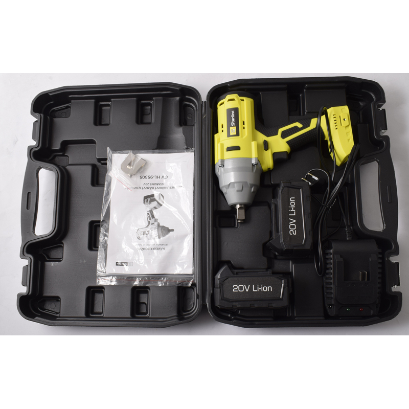 Акумуляторний ударний гайковерт Starline GV HL-95305 - це потужний і зручний інструмент для швидкого відкручування та закручування коліс, гайок і болтів в автосервісі, гаражі або під час виїзних робіт. Інструмент працює від 20-вольтової Li-Ion батареї ємністю 4,0 А·год і розвиває крутний момент до 1000 Н·м, що дозволяє впевнено справлятися навіть із "прикипілими" кріпленнями.