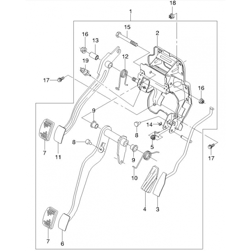 Педаль гальма Матіз в кузові М150. На скріншоті з каталогу під номером 6. Підходить тільки для автомобілів з механічною коробкою передач (МКПП). Не комплектується гумовою накладкою педалі. Не підходить для моделей М100 і М200.