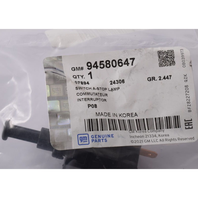 Оригінальний код 94580647 повністю збігається з каталожними номером виробника GM.