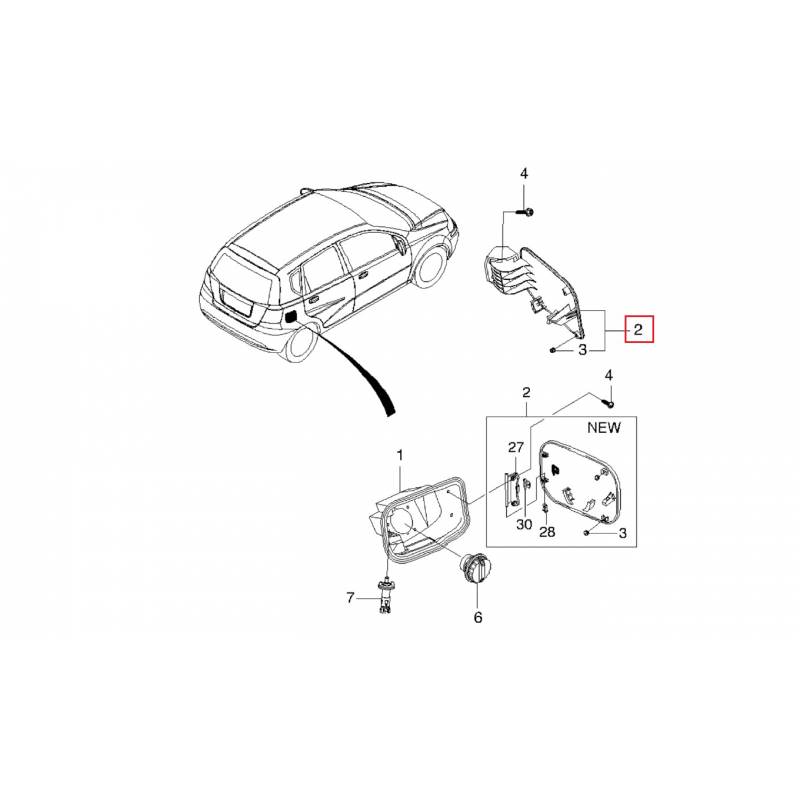 Для Авео T200 в кузові хетчбек до 2003 року випуску з він кодом до 092815. Від люка нового зразка відрізняється формою петлі кріплення. На схемі з каталогу номер 2 (виділено червоним кольором).