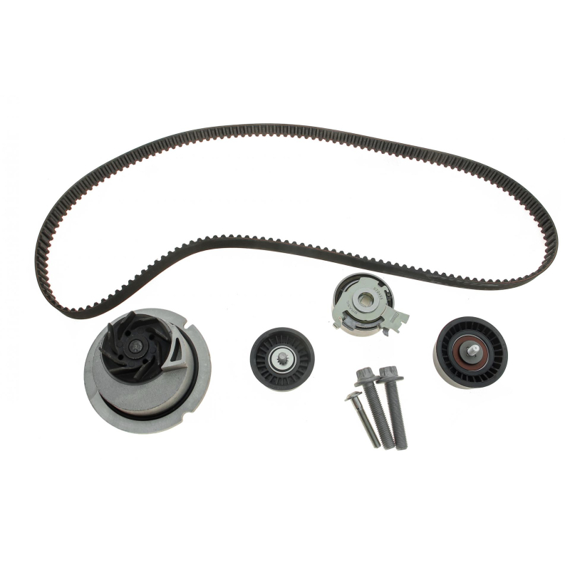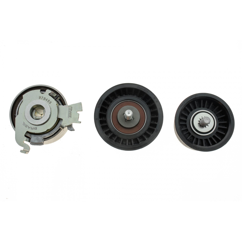 У комплекті ролик ГРМ основний, 2 обвідні, помпа, болти кріплення.