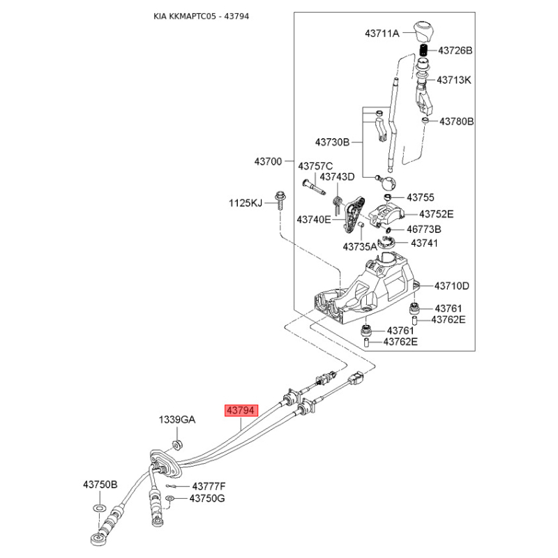 При отриманні замовлення перевіряйте комплектацію товару Затискач (засувка) кронштейна троса КПП 43794-1G100 Mobis.