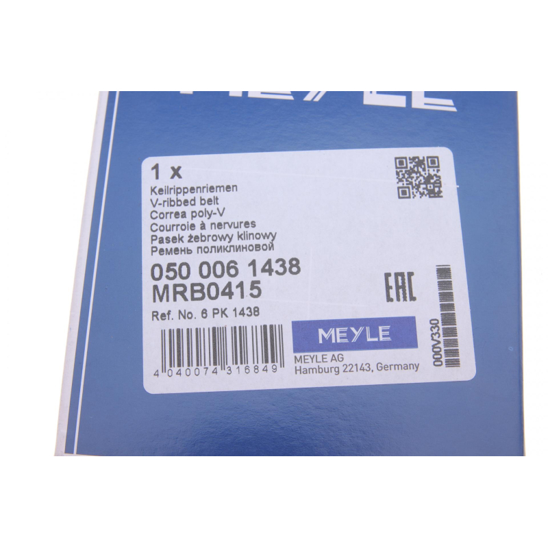 При отриманні замовлення перевіряйте комплектацію товару Полікліновий ремінь 6PK1438 MEYLE.