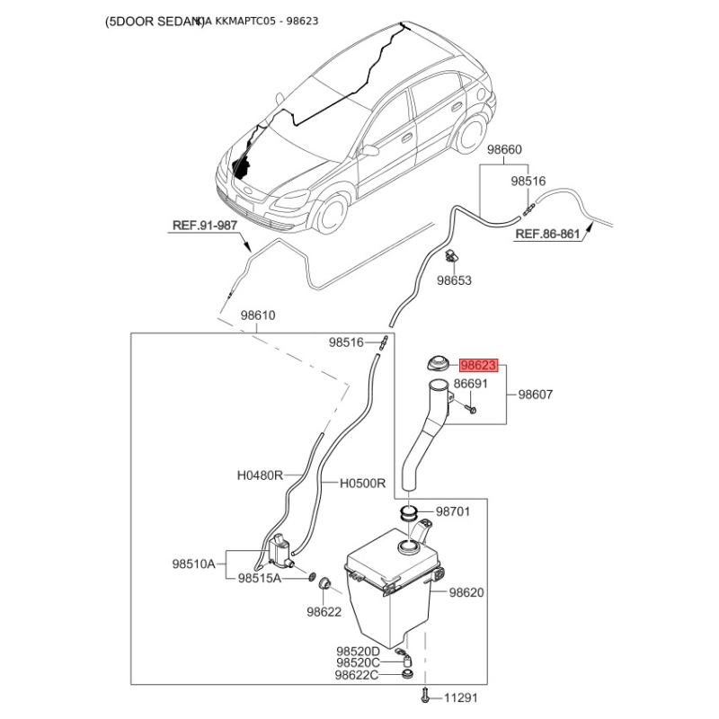 Якщо у вас виникли питання щодо Кришка, резервуар для води (бачок омивача) 98623-1G000 Mobis з номером 986231G000, зв'яжіться з нашим консультантом.