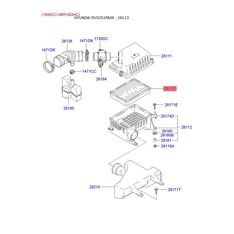 При отриманні замовлення перевіряйте комплектацію товару Фільтр повітряний 28113-22600 Mobis.