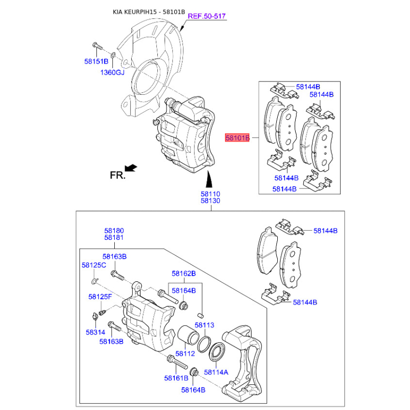 Пошук деталей можна виконати за оригінальним кодом 581011WA05.