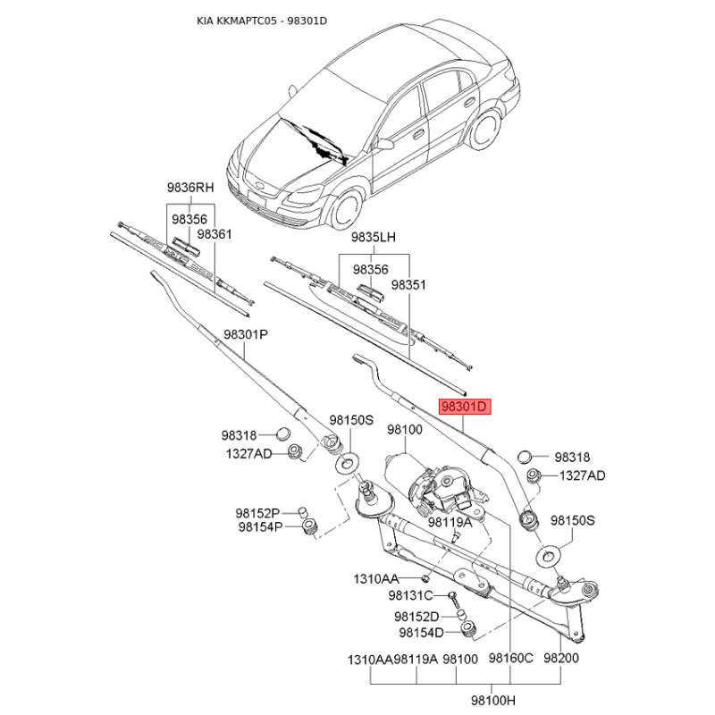 При отриманні замовлення перевіряйте комплектацію товару Важіль склоочисника 98310-1G000 Mobis.