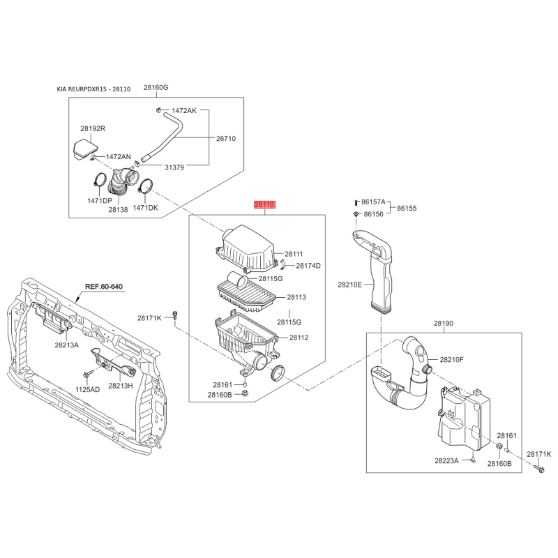 Якщо у вас виникли питання щодо Кришка, корпус повітряного фільтра 28110-1R300 Mobis з номером 281101R300, зв'яжіться з нашим консультантом.