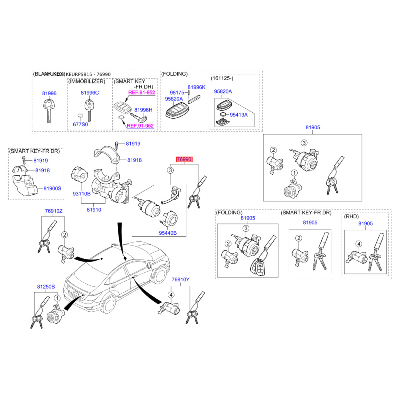 Замок (циліндр) запалювання з ключами 81900-1RH00 Mobis