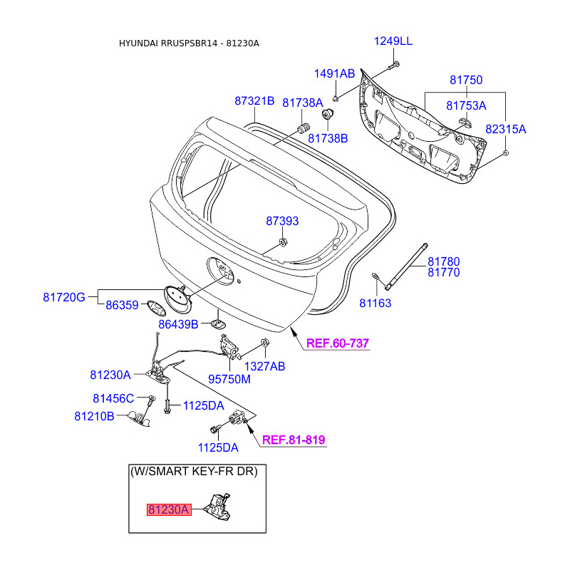 Якщо у вас виникли питання щодо Замок кришки багажника 81230-1R200 Mobis з номером 812301R200, зв'яжіться з нашим консультантом.