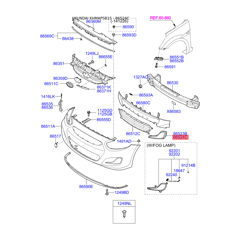 Облицювання, протитуманна фара переднє праве 86564-1R000 Mobis