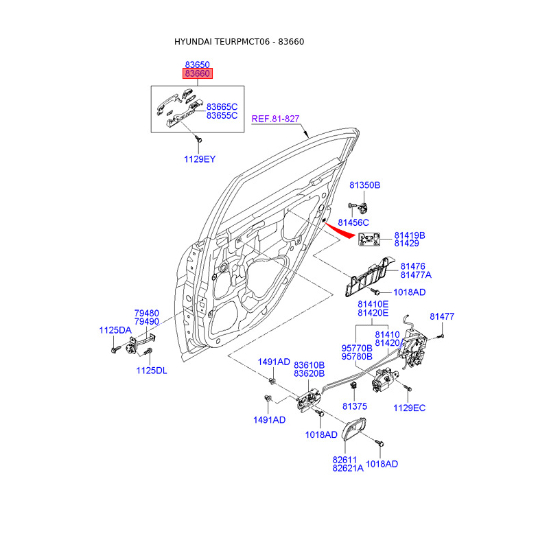При отриманні замовлення перевіряйте комплектацію товару Ручка дверей права 83660-1E000CA Mobis.