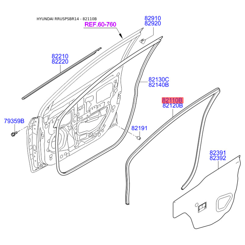 Ущільнення дверей ліве 82110-4L000 Mobis