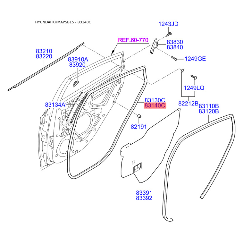 Ущільнення дверей праве 83140-1R000 Mobis