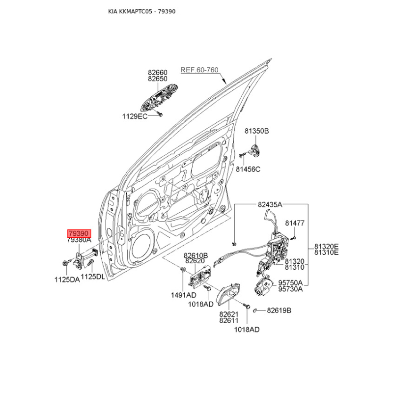 Якщо у вас виникли питання щодо Петля бічних дверей права 79390-1G000 Mobis з номером 793901G000, зв'яжіться з нашим консультантом.