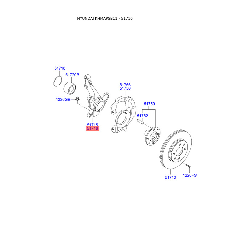 Поворотний кулак, підвіска колеса правий 51716-1R500 Mobis