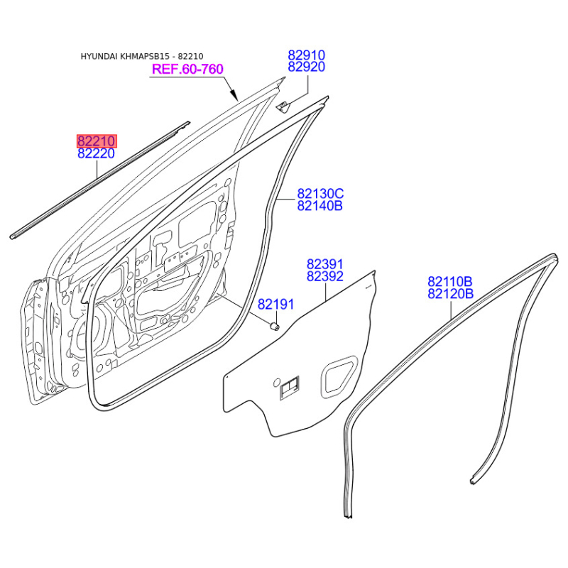 Ущільнення дверей ліве 82210-1R001 Mobis