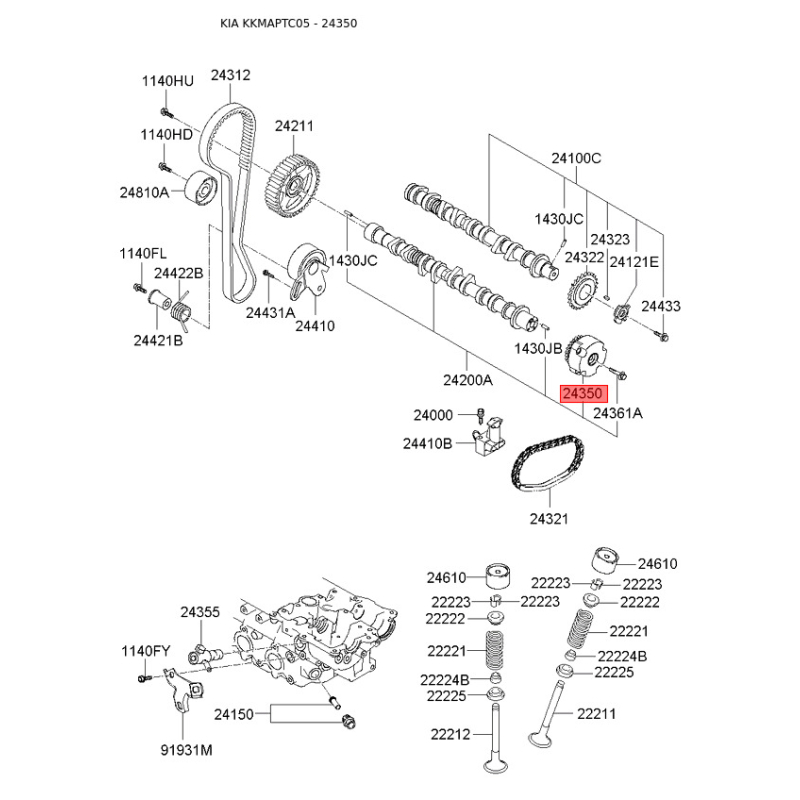 Комплект ланцюга приводу розподільного валу 24350-26800 Mobis