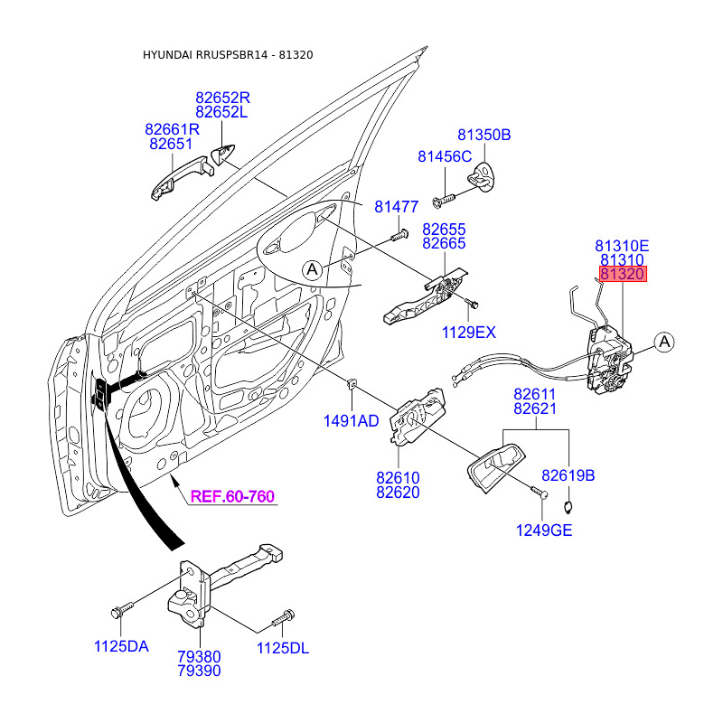 Замок дверей правий 81320-4L020 Mobis