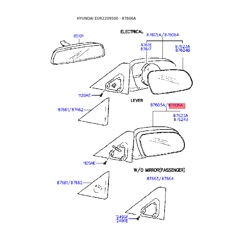 При отриманні замовлення перевіряйте комплектацію товару Дзеркало зовнішнє заднє праве 87606-22301CA Mobis.