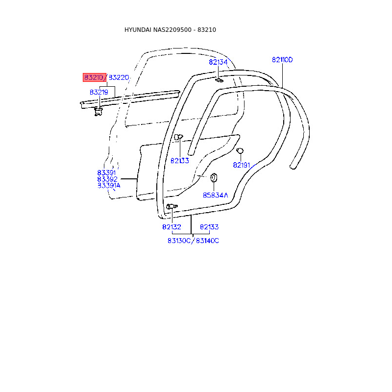 Ущільнювач (прокладка), бічне скло лівий 83210-22000 Mobis