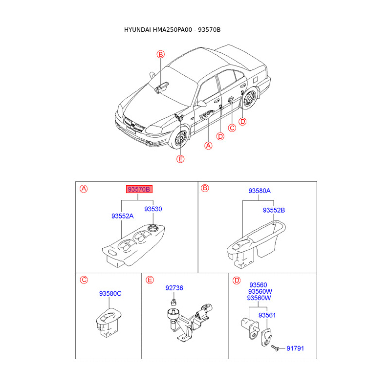 Блок кнопок склопідйомника 93570-25105PK Mobis
