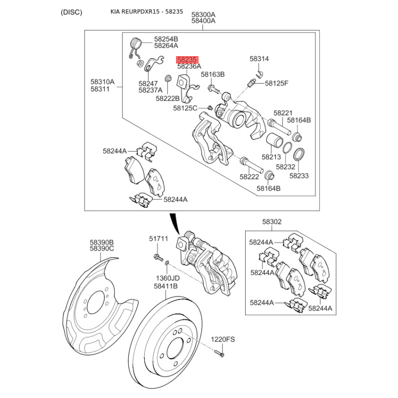 Пошук деталей можна виконати за оригінальним кодом 582350U000.