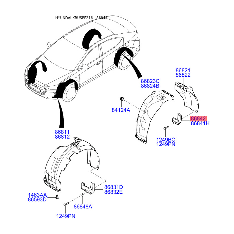 Пошук деталей можна виконати за оригінальним кодом 86842F2000.