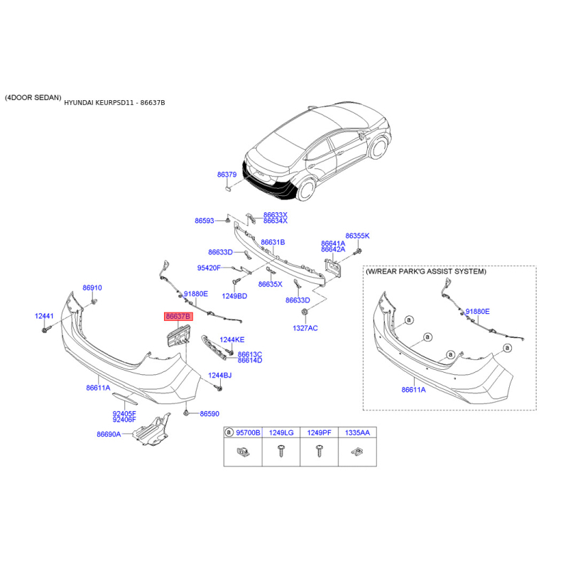 При отриманні замовлення перевіряйте комплектацію товару Кріплення підкрилка і бризковика нижнє 86652-3X000 Mobis.