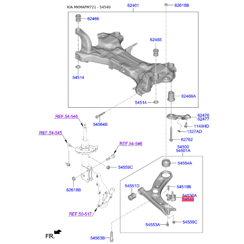 Пошук деталей можна виконати за оригінальним кодом 54530F2100.