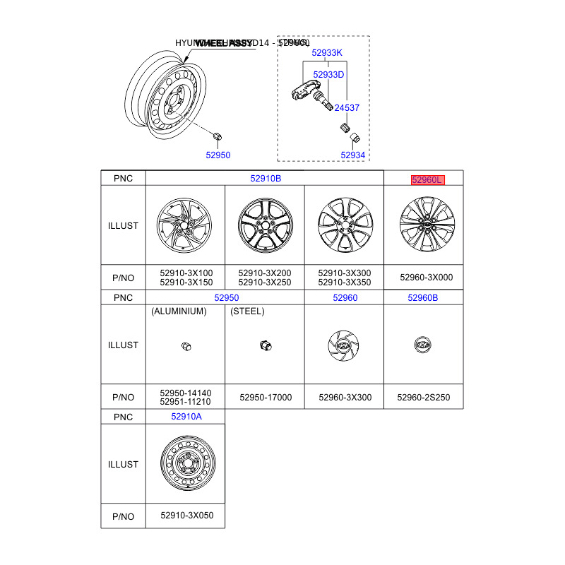 При отриманні замовлення перевіряйте комплектацію товару Емблема, декоративний колісний ковпак 52960-3X000 Mobis.