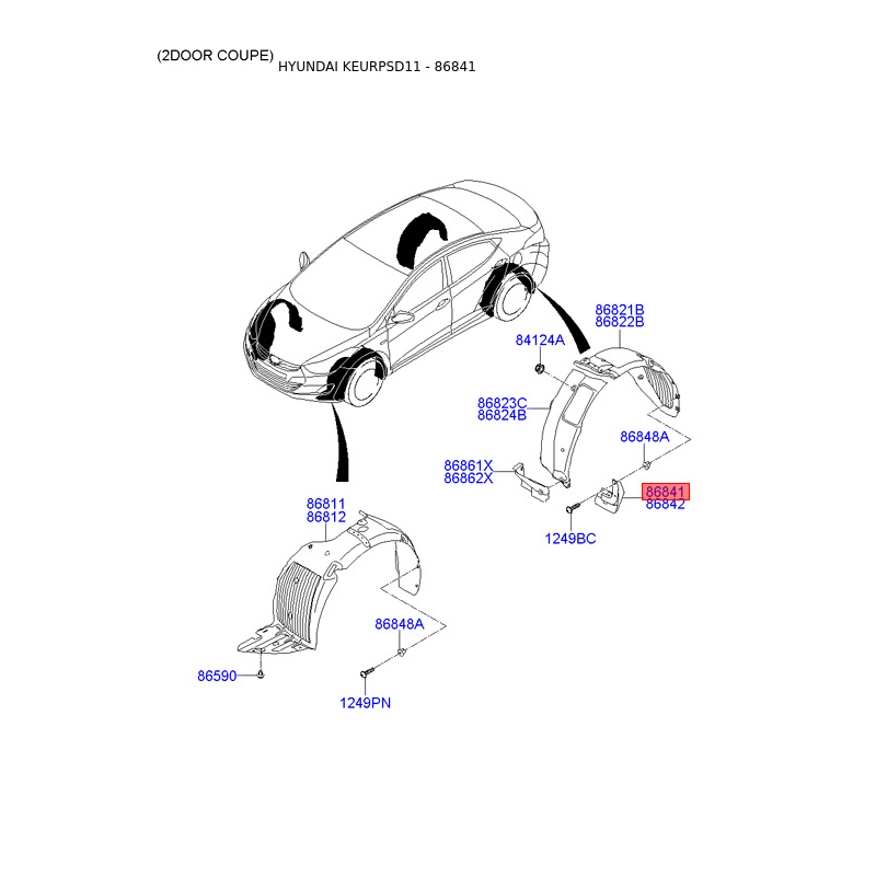 При отриманні замовлення перевіряйте комплектацію товару Бризговик задній лівий 86841-3X000 Mobis.