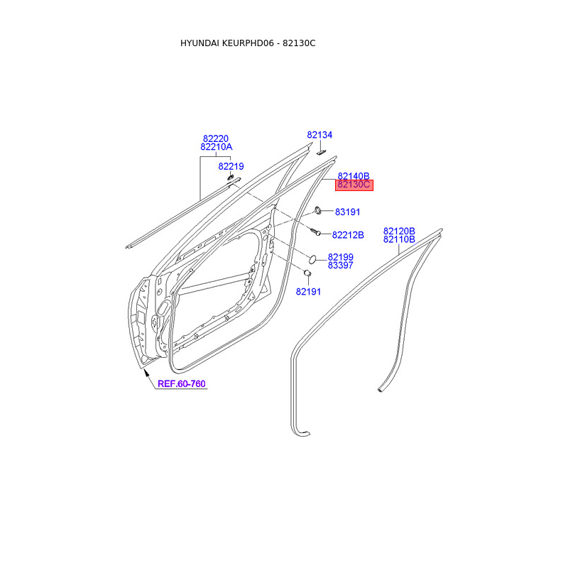 Ущільнення дверей ліве 82130-2H000 Mobis