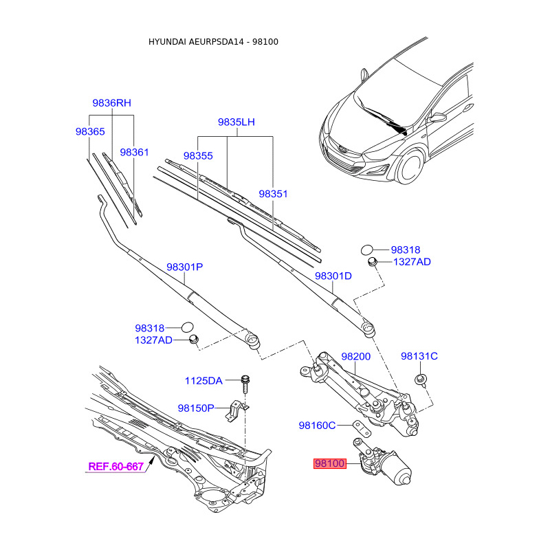 Якщо у вас виникли питання щодо Двигун склоочисника 98110-3X000 Mobis з номером 981103X000, зв'яжіться з нашим консультантом.