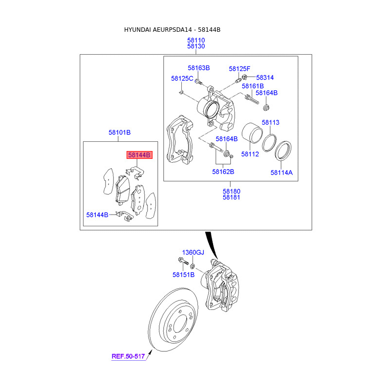 Оригінальний код 581443X000 повністю збігається з каталожними номером виробника Mobis.
