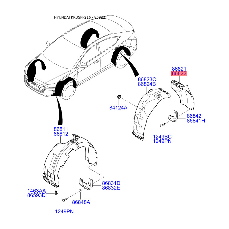 Обшивка (підкрилок), колісна ніша права 86822-F2000 Mobis