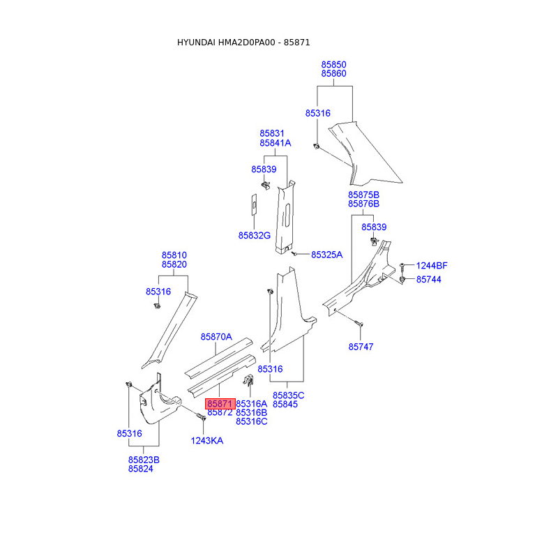 Оббивка (накладка) салону ліва 85871-2D000LT Mobis