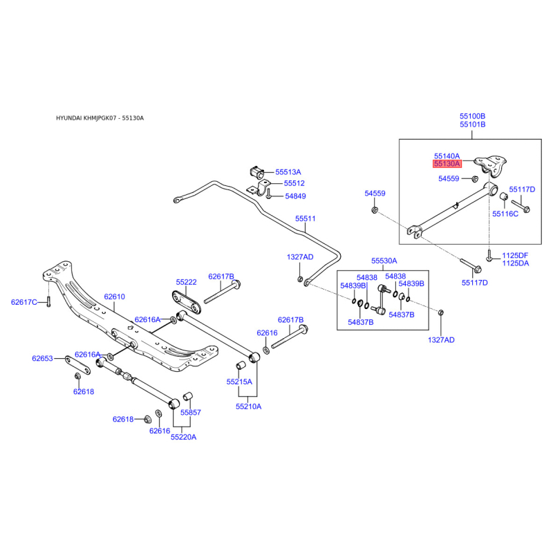 При отриманні замовлення перевіряйте комплектацію товару Шарнірний кронштейн, балка мосту ліва 55130-29000 Mobis.