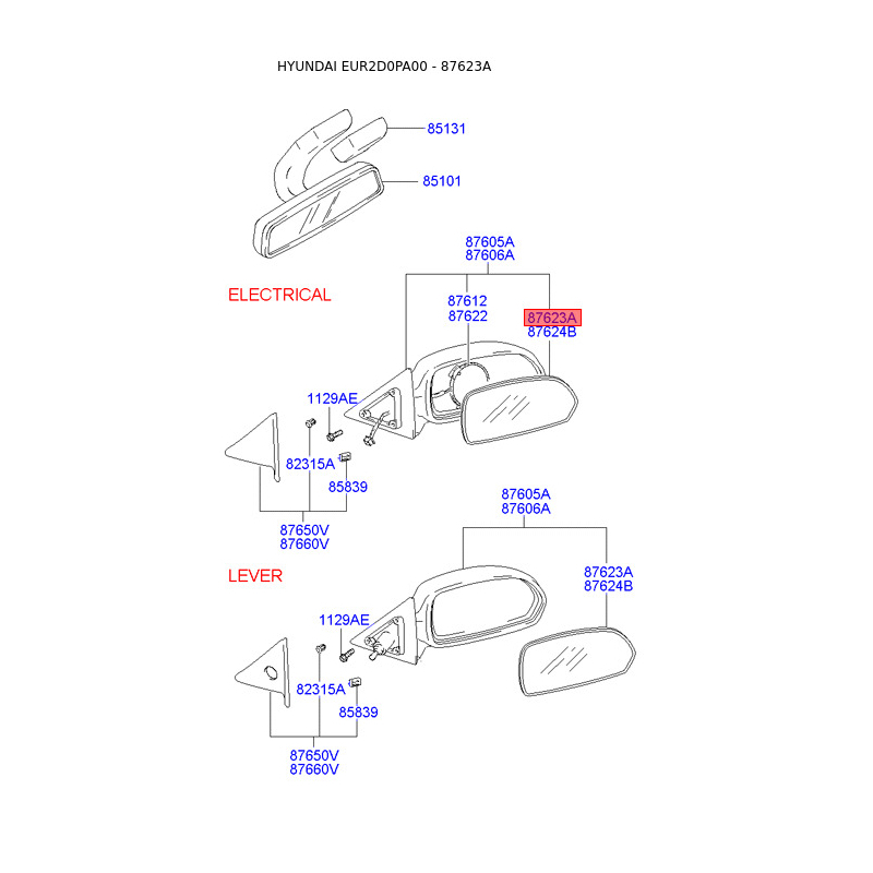 При отриманні замовлення перевіряйте комплектацію товару Дзеркальний елемент зовнішнього дзеркала задній лівий 87611-2D220 Mobis.