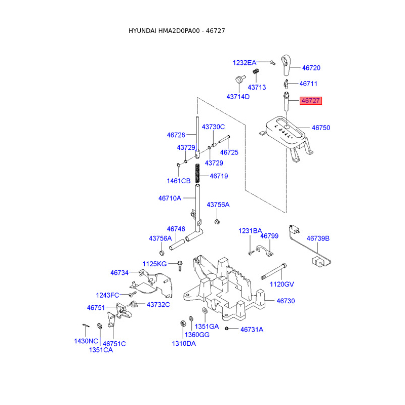 При отриманні замовлення перевіряйте комплектацію товару Ручка важеля перемикання передач АКПП 46727-2D200 Mobis.