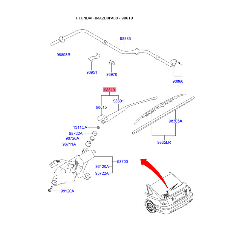 Важіль склоочисника 98825-2D000 Mobis