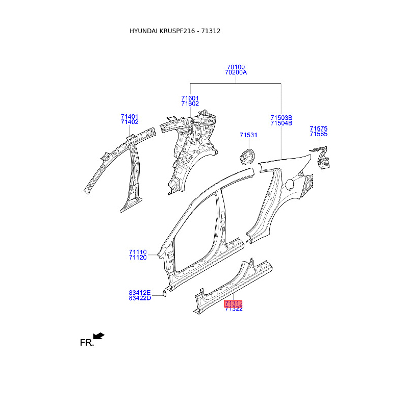 При отриманні замовлення перевіряйте комплектацію товару Поріг підлоги (кузов) лівий 71312-F2D00 Mobis.