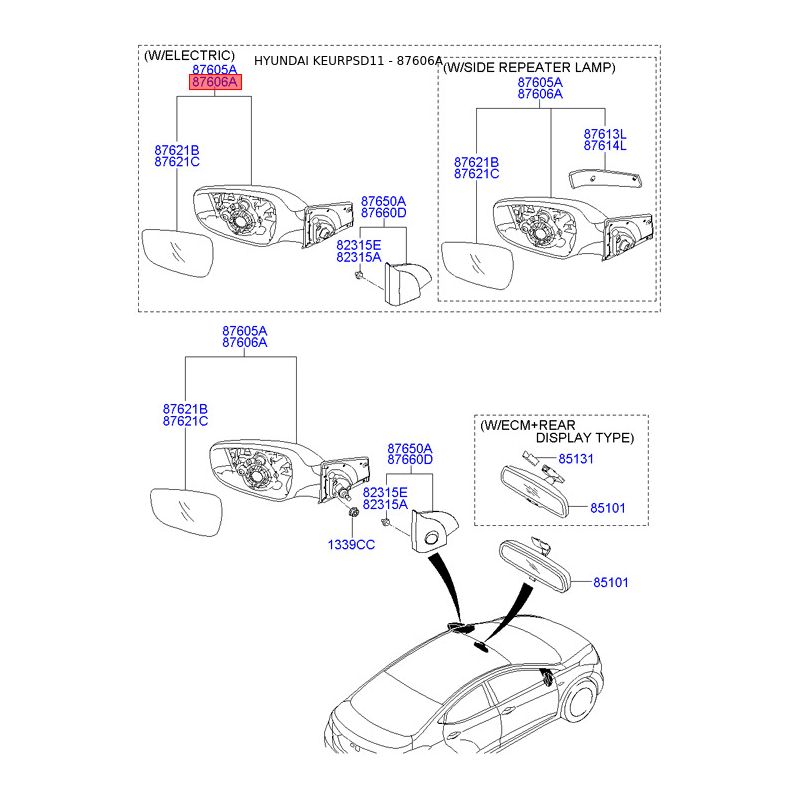 При отриманні замовлення перевіряйте комплектацію товару Дзеркало зовнішнє заднє праве 87620-3X160 Mobis.