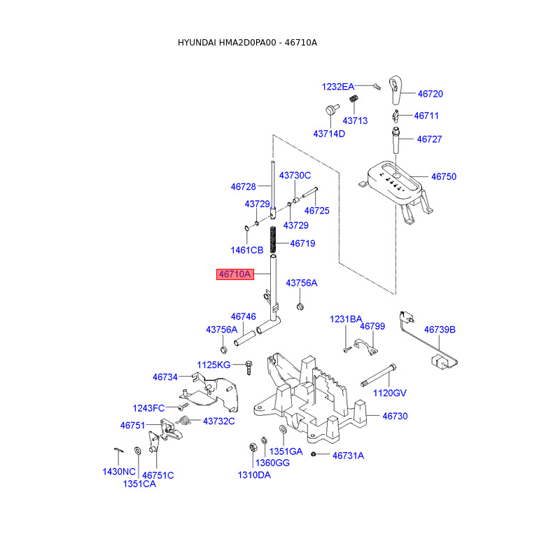 Важіль перемикання передач АКПП 46710-2D200 Mobis