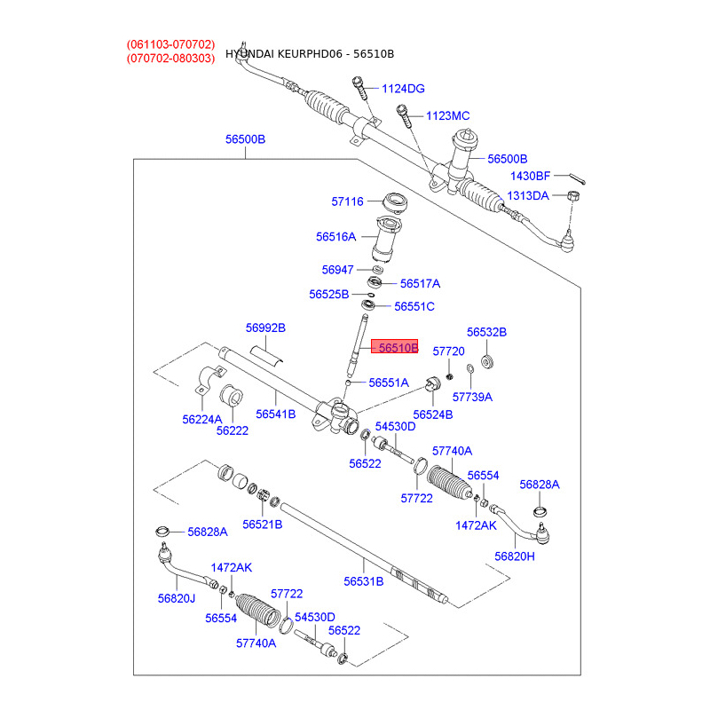 При отриманні замовлення перевіряйте комплектацію товару Вал шестерня (черв'як) рульового механізму 56512-2H000 Mobis.