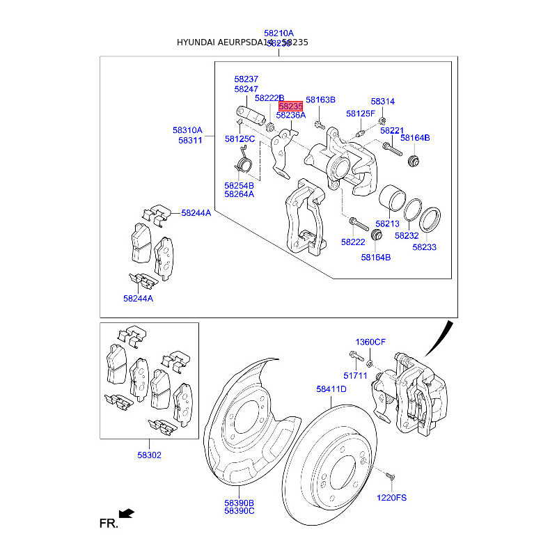 Пошук деталей можна виконати за оригінальним кодом 582353X000.